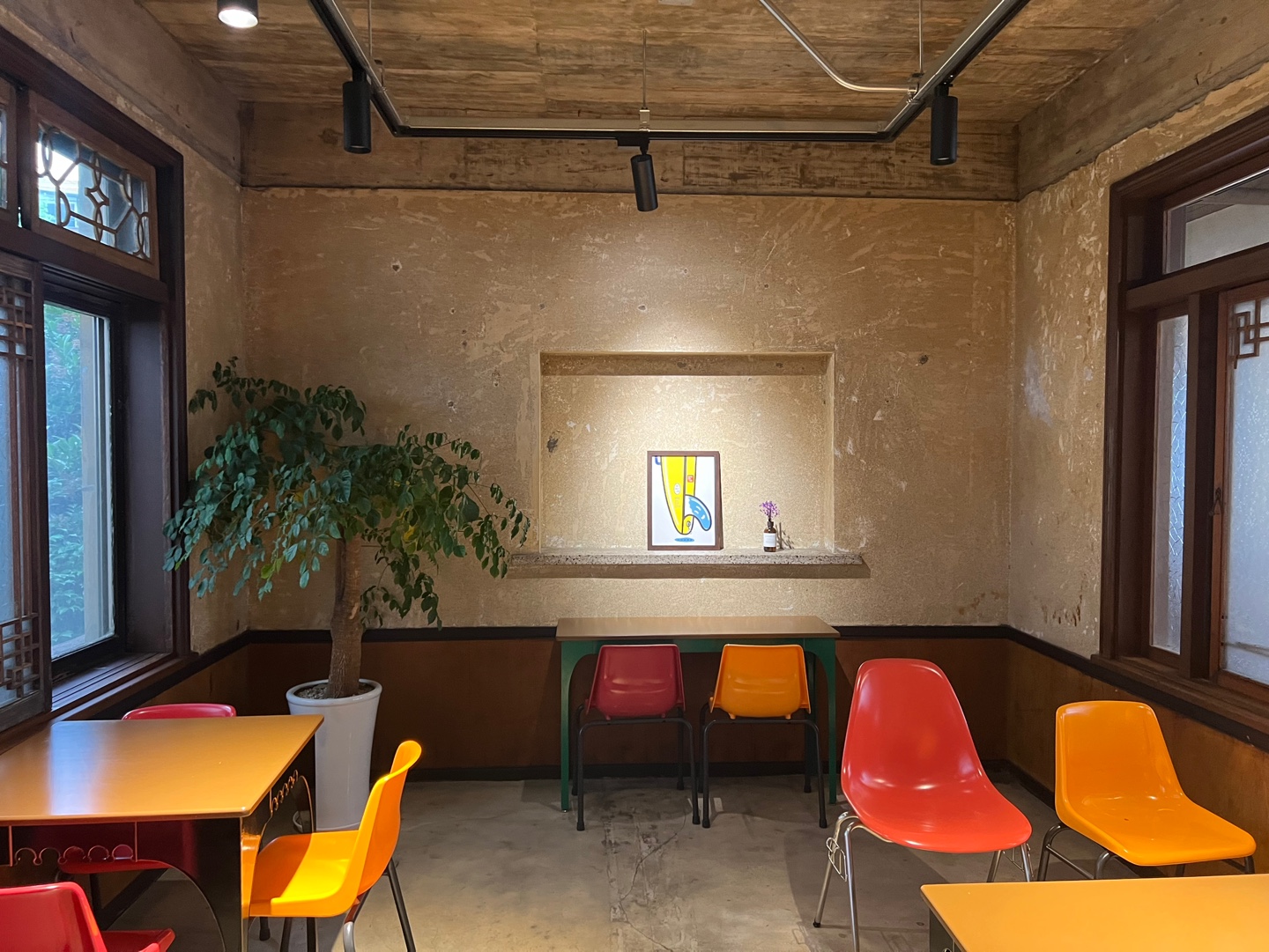 카페의 공간은 60년대 이상의 오래된 고택을 개조하여 새롭게 만든 공간으로 고즈넉하면서도 모던하면서도 오묘한 느낌이 드는 공간이었습니다. 다소 을씨년스럽고 삭막해 보일 수 있는 공간 사이사이 식물을 배치함으로써 따뜻한 느낌이 드는 것 같습니다.